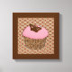 Rosa av jordgubbsbär Frosted Cuptårta med chokladfjäril i en dekorativ, chokladbrun dammkapslad med mönster i cupkakor, på en brun, brun och korall rosa kinesisk schallopbaksida poster