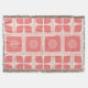En modern estetik i mitten av århundradet, främst i korallets rosa och en lätt kräm eller benvit. Mönster består av omväxlande rader av två olika utformningar: den ena raden har kvadratiska block med en cirkelform i mitten och den andra radfunktionen som omsluter "plustecken" eller kor-former som skapas av det negativa utrymmet mellan fyra kvartscirkelliknande inslag. Det övergripande intrycket är geometriskt och grafiskt.