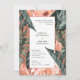 Koral rosa och tropisk bröllopsinbjudan till löv. En del av en bedövande elegant bröllop-svit. Modern grönt-, blå- och koralltropiska samlingar.