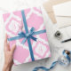 Rosa av marockansk trellis och vit monogramförpack presentpapper