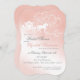 Förtjusande saga inbjudningskort för möhippan med en antika hästdragen vagn och hjärtan med monogram i en söt rosa färg.