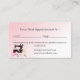 En Möhippa för snyggt-klänning, avtalad tid, dekorerad med en skräddarprovdocka och syd maskin, med rosa sträng ljus alla på en övertoningsbakgrund för blek rosa med utrymme för skriva i kundens nästa möte datum och tid. Perfekt för små företag som konsementföretag, sömmerföretag, omställningstjänster och mycket annat. All text kan anpassas och personlig till kostym som ditt företag behöver. Påminnelsemallen finns på kortets baksida, tillsammans med företagsinformation och kontaktinformation.