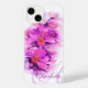 Snygg, strålande, orkidéfärgad rosa, styliserad blommigt av petalkonst i hjärtat fodral för din telefon. En underbar gåva för 28-årsjubileum som modern gåva är orkidén. Anpassa med ditt namn och inledande. Det här exemplet lyder: Charlotte H. Originaldesign och handblommans målning av Sarah Trett.