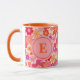 Cute Retro Blommönster Orange Rosa Monogram Mugg.