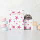 Vackert och färglöst papper med mönster av rosa stjärnor för din presentförpackning. Illustrerad och designad av Patricia Alvarez.