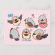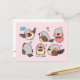 Rosa av söt tecknad i mönster vykort