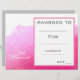 Ett modernt klasscertifikat för konsthandling med söt perfekt för rosa av färgbilder i stänk för att uppmuntra en ung konst i student. Du kan göra egna skrivor. En underbar resurs för alla typer av klasslärare.