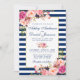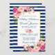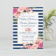 Bröllopekort för Watercolor Blommigt Blue Rand - Blått skript - Blåstripe bakåt