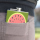 Utformning med en återkontakt som inspirerats av en vattenmelon med en rosa cirkel och frö mönster mot mörk grönt bakgrund. Ett anpassade som du kan anpassa med egen text, bilder och egna idéer. En originalbild av digitala konster.