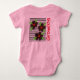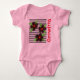 Konstnärlig och modern, liten blomstrande kropp kostym, rosa baby bära med svarta blommor och svart rand. Den växande texten kan vara personlig med ert eget budskap, eller till en spädbarn namn för en vacker gåva.
