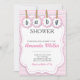 Rosa Baby Shower clothespin-inbjudningar Inbjudningar
