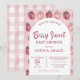Rosa baby shower-inbjudan med jordgubbs-tema