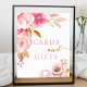 Välkomna gästerna i stil med denna rosa- och guld-blommigt-skylt "Kort och gåvor". Den här eleganten har mjuka blommigtar med vattenfärg och faux guld glitter-accenter och är perfekt för duschinstallationen i flicka. Bara ram och visning på ett välkommet bord för att få en tankfull och sammanhållen beröring till din dekoration.