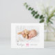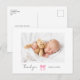 Uttryck din tacksamhet med vårt moderna rosa baby shower tack-kort med foto, designat för att fira ankomsten av ditt lilla barn. Detta vackra vykort har en delikat akvarellbåge i kombination med ett vackert skrivsätt, med en mall för foto och utrymme för ditt barns namn på framsidan. Lägg till ditt meddelande och adress på baksidan.