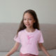 Ballerina silhouette i en solid skade av rosa. Mjuk färgad t-shirt för unga dansare. Lägg henne namn på högerna. Färg kan anpassas!
