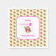 En födelsedagslapkin för två års födelsedagsfest. Texten är helt redigerbar: Namn, bildtext, hälsning. Utformningen har en leende apa som håller en skarp ballong av rosa som har figur 2 på den. Ytterligare en mönster av apor på en gräddbakgrund omger huvudutformningen.