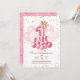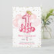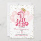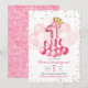 Rosa ballong med krona födelsedagsinbjudan för ettårsdag