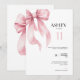Gör din tonårings speciella dag ännu mer minnesvärd med vår 11-års inbjudan med en vacker rosa bow-design. Denna eleganta och klassiska inbjudan är en redigerbar mall som du enkelt kan anpassa, vilket gör den perfekt för en 11-årig flickas födelsedagsfest. Med sin minimalistiska stil och charmiga vattenfärgselement är denna inbjudan inte bara visuellt tilltalande utan också praktisk, så att du kan skicka en snygg rosa bandinbjudan med bara några klick. Välj vårt utskrivbara kort för att säkerställa att varje detalj sticker ut när du inbjuder vänner och familj att delta i firandet. Fira hennes resa in i tonåren med en fantastisk inbjudan.
