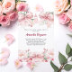 En elegant vit bakgrund, dekorerad med 3 rosa band, rosa blommor och en babyflaska. Anpassa och lägg till ett namn och festdetaljer.