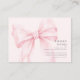 Uppmuntra en genomtänkt och bestående gåva med detta söta ”Böcker för bebis”-följekort. Designat för att matcha samlingen för baby shower med akvarellband, har den ett mjukt rosa band och en delikat coquette-inspirerad stil som passar perfekt till kvinnliga babyflickfiranden.