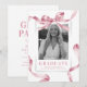 Fira din examenstågares milstolpe med våra enkla men eleganta examensfestinbjudningar. Varje kort har en slående vit bakgrund, prydd med ett foto av din examen som ramas in av ett sött rosa akvarellband och -slinga. Vänd på det för festinformationen som är enkel att anpassa.
