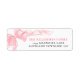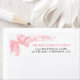 Den här söta etiketten för returadress har en mjuk rosa akvarellslinga i det övre vänstra hörnet för en söt, stilren touch. Namnet är tryckt i rosa med ett klassiskt serif-teckensnitt, medan adressen visas nedan i ren svart serif-text för enkel läsbarhet. Enkel men charmig, denna design ger en polerad look till kuvert för födelsedagar, fester eller något tillfälle där en söt rosa slinga passar temat. All text, teckensnitt och färger kan anpassas för att matcha din personliga stil.