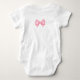 Den här fina babybodiesen i ett stycke har en rosa vattenfärgskoquettebåge. Denna bodysuit är perfekt för att presentera en ny baby i familjen eller som en söt gåva till en babyfest. Du kan anpassa denna design genom att klicka på "Anpassa denna mall" eller om du vill ändra teckensnitt, färger eller arrangera designelementen på ett annat sätt kan du klicka på "Redigera med Designverktyg".
