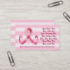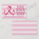 Denna rosa banddesign för bröstcancer är för en mycket speciell sjuksköterska, Suzanne, som avslutade henne förskjutningen med en annan tålmodig, då hon hörde en kvinna skräck och kom att trösta någon som var nödställt. Tacka dig, tacka dig, tacka dig för din vänlighet, medkänsla och generositet av anden. Du är en ängel! Tillgängligt på beställnings- designade visitkortar.