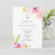 Rosa Baptism bjuder in vattenfärgsblommor Inbjudningar