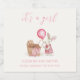 Det är en liten flicka, ett barnskött barn, en vattenfärgkanin i rosa trasa som håller i ballongen och hennes baby i barnvagn. Du hittar en inbjudan till babydusch, party-dekanorutrustning i den här samlingen. Anpassa din egen ord och färg med redigeringsdesignen.