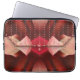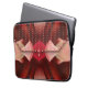 Den ursprungliga abstrakten av ZoeSPEAK på denna 13-tums Laptop sleeve utförs i stil i en kopplingspåse eller kvällspressning. De hårdformade vikterna av texturerad vävnad, i rost-, rött- och blek-rosa, gjordes av ett originalfoto av bananlöv. Påsen har en klämma som är putsad i ett djupt rostigt rött band som gränsar till rosa pärlor. Små rosa pärlor i lodrät täcker klaffen. I mitten av handväskan finns stängningen, en pärlröd skiva med en gyllene kant och en rosa bead i mitten. Under detta är en högdager rosa-droppe.