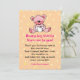 Denna charmerande, handdragna utformning av rosan ger ett hjärtligt tack till alla baby-temerade tillfälle. Med en vacker nalle med ett sött leende och mjuk palett i färg får den här illustrationen perfekt glädjen och varheten att säga "tack" på det mest förtjusande sätt. Omgiven av lekfull polka dots och mysiga teckendetaljer är det ett underbart sätt att uttrycka uppskattning med lite charm och glädje.