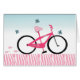 En söt design med en rosa cross country cykel med svarta pedaler och svart däck. En mjuk blå bakgrund med små blå fjärilar som flyger om.