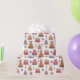 Söta, färglösa, giglila tårtor mönster i mestadels rosa- och ljusskålade kakor, i andra färger ingår gult och en bakad vaniljkaka färg. Vit bakgrund.