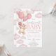 Rosa björn ballong Björn knappt väntar Baby Shower Inbjudningar