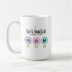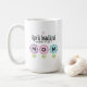 Förhöj din morsdagspresent med denna vackra blomsterkaffekopp. Dekorerad med rosa och blå blommor som stavas ordet "MAMMA" och handritad typografi som säger "Livet är vackert eftersom du är i det", kommer denna kopp att tillföra en feminin touch till din mammas morgonrutin. Det som gör denna kopp unik är de anpassningsbara textfälten som låter dig anpassa den med dina egna känslor och initialer för att skapa ett monogram, om du föredrar det. Skapa en meningsfull present för att uttrycka din kärlek och uppskattning för din mamma.