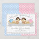Kön avslöjande bebis shower inbjudningar med söta bebis pojke och flicka på en söt rosa och blå prick bakgrund. Dessa söta rosa och blå bebis kön avslöjande bebis shower inbjudningar är lätta att anpassa för ditt evenemang genom att helt enkelt lägga till dina detaljer.