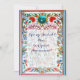 Elegant, klassisk blomdesign med röda tulpaner, nejlikor, teal, akblå blommor, vårens utsmyckningar, virvlar, blomsteranordningar inspirerade av turkiska motiv från 1700-talet och en ljus 3D akvamarin ädelsten av Bulgan Lumini (c). Lätt att anpassa med dina initialer och egen text som bröllopsinbjudan, platskort, spara-datum-kort, tack-kort, möhippa, födelsedagsfirande vid 16-årsdagen, fester, årsdag, förlovningsfirande eller nästan vilken händelse som helst du önskar!