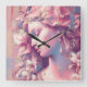 Rosa Blå pastel Teckning Fyrkantig Klocka