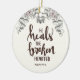 En handdragen rosa blommor och pastellblått grått lämnar bouquet med bibelversen från Psalm 197:3 - Han läker det brutna hjärtat. Baksidan färg är ett fast grått. Lägg till ett eget anpassningsbar-meddelande på baksidan om du vill anpassa.