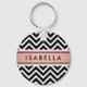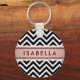 Tillbehör nycklar i stil med en modern chic runt nyckelkedja. Utformningen har ett svart och vitt chevron zig-zag mönster, söt rosa faux ro guld foil rand, och ditt namn eller annan anpassad text i ett enkelt svart typografiskt teckensnitt. Den här eleganten och trendigets tillbehör gör en snyggt till henne. Perfekt som möhippa- eller bachelorette-parti, eller som en idé om en mutad gåva.