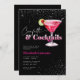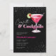 Rosa Black Confetti och Cocktails Birthday Inbjudningar