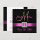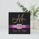Den sofistikerade elegansen förmedlas av den vackra bröllop-torget Spara datumkortsdesignen. Ett svart på svart dammmönster fungerar som bakgrund för en fotoeffekt av Metallic Guld Initial M och en Fuchsia Rosa-platinaband och diamantbrooch ALL UTTRYCKTA på FLAT-KORT Spara datummeddelanden från Bröllop. Ett perfekt sätt att tillkännage ditt bröllop-datum. Contemporary, men klassiskt dammmönster med en design som gör att du kan anpassa framsidan med namn och baksidan kan lägga till din anpassade datumtext. Utformningen är inställd för inledande M-monogram. För annat brev, annat menyfliksområde färg och annan bakgrund kontaktar du designern på luxuryweddinginvitations@gmail.com. Layoututkast av Elke Clarke©. Grafik licensierad. Välj bland en mängd typsnitt och vackert för att göra PERFEKTEN för förlovningens meddelanden!