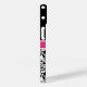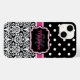 Trendig svart + vit dämpare och polka punkt mönster med skarp rosa inslag. Det här trendiget iphone case har en svart, rosa och vit mall för anpassadet namn och monogram.
