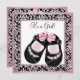Det finns ett sött par rosa och svart baby-skor som är kompletta med rosa rosenknoppar och buggar... Den här söta rosa och svart dammduschinbjudan är lätt att anpassa för din händelse genom att helt enkelt välja orangen "Anpassa den!" för att börja lägga till din händelseinformation, typsnitt stil, typsnitt storlek & färg och ordalydelse. Observera att alla kort- och inbjudningssymboler som du hittar på Zazzle är tryckta bilder utan egentliga juveler, bogar, upphöjda, präglade eller tillagda delar eller delar.