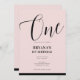Rosa Black Modern Minimum Script ONE 1ST Birthday Inbjudningar