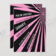 "Du är inbjuden till en av världens party för..." En coola rosa och svart startar geometriskt mönster med ljusstrålar. Den här födelsedagsfest inbjudan-mallen är underbar för barn och vuxnor. En skymning zona party inbjudan.