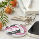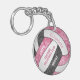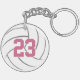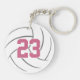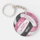 Det här anpassningsbarna-teamet färg volleyball-nyckelkedjan har en realistisk bild av en volleyball som har en blommigt kaleidoskopisk mönster blandad med sina rosa och svart paneler - hennes namn, domstolsställning, laget namn och skolan/klubben är anpassade på framsidan, liksom hennes jersey-nummer på baksidan över en enkel volleyball-seams-bild - av katz_d_zynes
