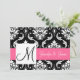 Rosa Black Vintage Damask Initial Bröllop Inbjudningar