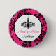 Denna knapp för modern och trendig personlig hett fuchsia rosa, svart och vit chandelier Maid of honor har en rosa och svart bakgrund i scrolls mönster på den som matchar bröllopsinbjudan nedan. Texten är anpassade och det är också knappens form och storlek. Om du behöver ändra något, skicka e-post till niteowlstudio@gmail.com.